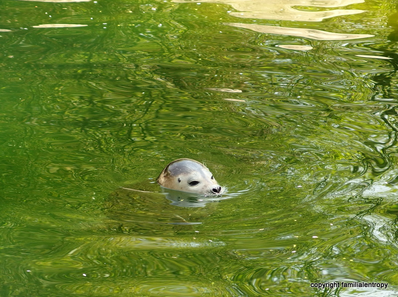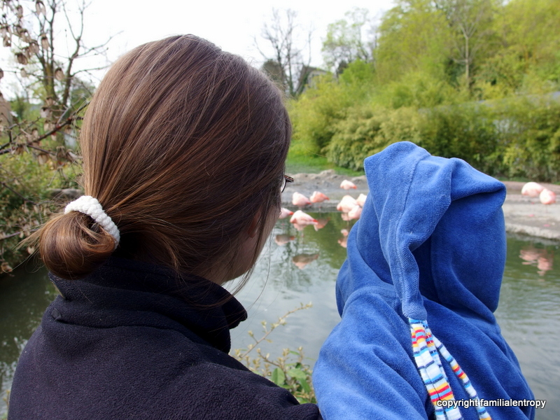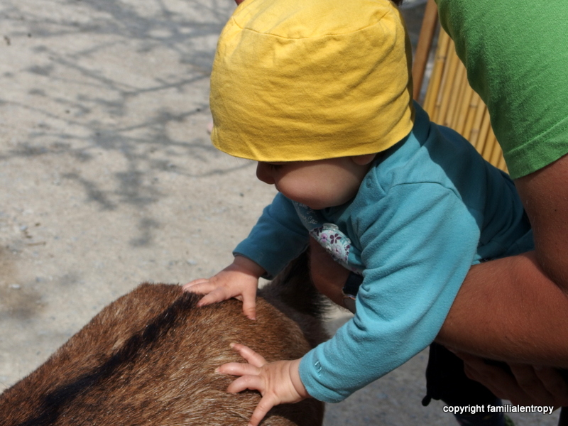 It was then followed by a short visit of the flamingos and the capybara, an interested examination of an ant, lunch (slightly distracted by the peacock two tables down) and enthused observations of geese and storks. During a small nap of the little one, Karsten and I visited the seals and the otters (finally saw one!) and, when she woke up again, we went to the petting zoo. The little one really enjoys petting animals, as long as they don’t get too wild. The goats were maybe not the most ideal animals for that, but she still had a lot of fun. So did we. And the bark mulch next to the compound is perfect for calming your nerves and some contemplation….