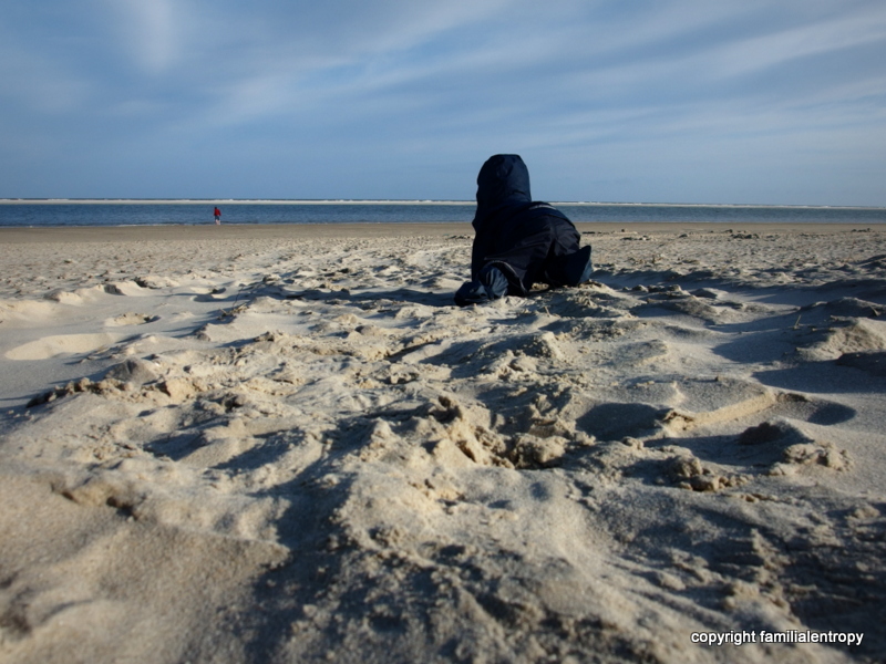 As soon as most of the guests had left on the monday morning ferry, the weather changed from rainy to less rainy (and after another 2 days from less rainy to sunny) and Karsten and I enjoyed some more beautiful days on the island. The little one loved eating sand (and many other things) and destroying sand castles. She also loved the indoor playhouse which was an awesome place to wait until the occasional rain showers were gone again. We loved eating matjes (salted herring) and shrimps. We loved going for walks in the dunes. I loved the trip to the seals (during which Karsten took care of the little one). We loved drinking coffee in the sunshine. And again the good company of our friends.
