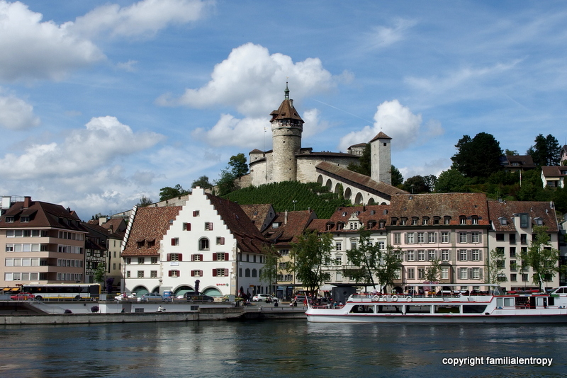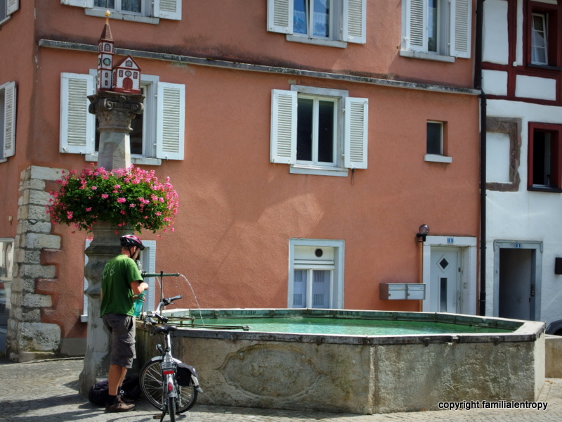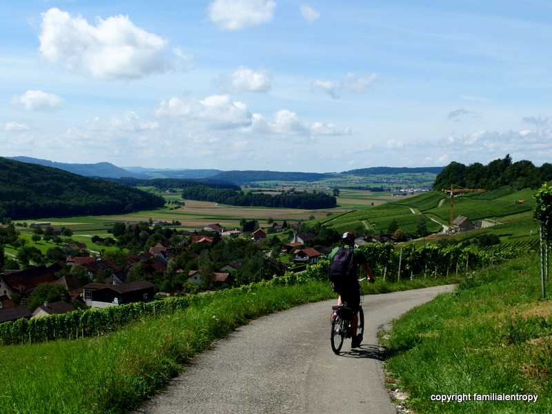 When I wrote that we don’t have a honeymoon, it wasn’t completely true. We did get a honeymoon-day as a present from our friends which we made use of today. The little one therefore had the pleasure of her first “Gotti-Tag” (Swiss German for a day spent with your godmother) while we took the train to Schaffhausen and then rented an E-Bike in order to explore the Pinot Noir region.