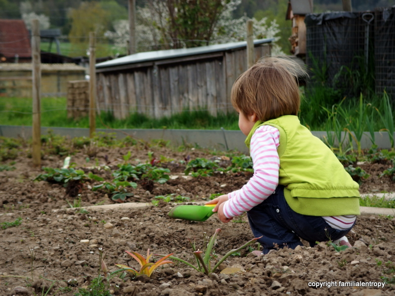 Since early February the little one and myself have been lurking around the garden to check whether it’s already worth gardening again. And I am happy to finally announce: the gardening season has started again!!
