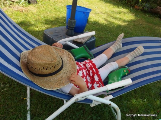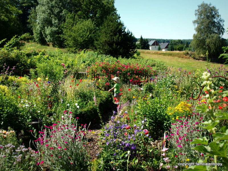 After almost two weeks at the Baltic Sea, the little one and I went to my parent’s place and spent some wonderfully relaxing days at our very own summer resort. Our normal rhythm each day: waking up, then reading books (the little one in her grandmother’s bed, and myself in my own bed…blessful moments with a chance to actually finish two or three books!). Then breakfast, followed by various activities such as trampolining, picking berries (strawberries, blueberries, black currants, white currants, cherries…), garden work, watering flowers, discovering the old barn, reading books, trampolining, water splashing, trampolining, relaxing on the sun bed, watching the bumblebee nest….After lunch a lunch nap for all of us (and more time to read), then trampolining, eating ice-cream, drinking juice, relaxing, more discovering of the old barn, swinging, water splashing, collecting snails, occasional drawing, playing with dolls, trampolining…..and some occassional trips to the city, the forest or the zoo. And at the end, dinner and bed time (only after reading two or three bedtime stories), finally falling asleep to the sound of birds and running water from the dwell. Heaven. And just the right rhythm for hot summer days.