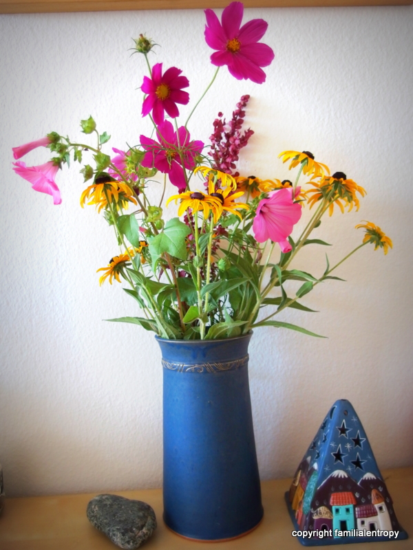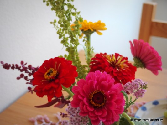 What to do? Well, I decided to pick a big bunch of flowers in the garden. And I just watched the best husband in the world and the little one playing and cheering on the playground and my heart overflows with love. For the time being, the mean little voice is banned again. The Saturday morning can continue.