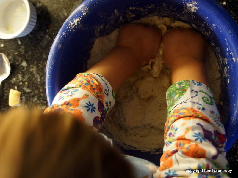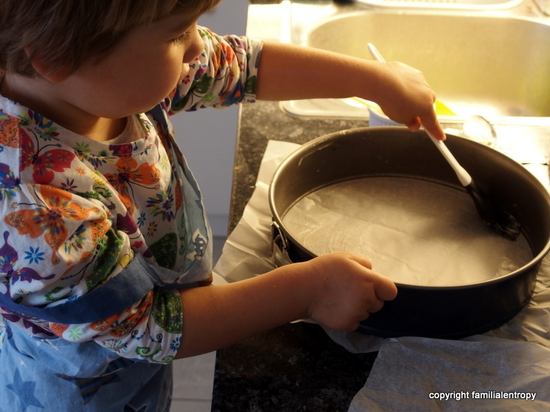 SO! Yesterday, the little one and I bought a big pumpkin and I used the lunchtime nap (both kids were sleeping! Jackpot!) to make pumpkin pulp. And today, the little one and I made pumpkin pie. In the afternoon, Karsten came home and we invited our friend and sat down in order to celebrate Püppis birthday (the doll. It’s always good to have a reason to celebrate with a piece of cake!) and to enjoy some proper and incredibly delicious pumpkin pie with vanilla ice-cream. Why, oh why don’t I make it more regular?? I should, really. After all, I have such a great kitchen aide!