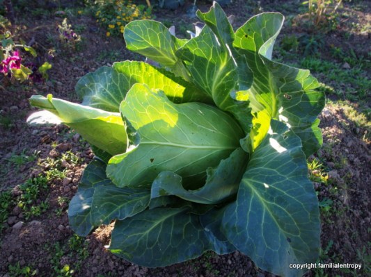 The kale looks fine, and so does the white cabbage though I am not sure who is going to eat this massive plant as I am still breastfeeding and don’t want to provoke a night with colics. There is still leek growing and red cabbage as well as some last mangel.