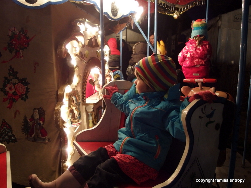 With the storm came the first christmas preparations. People started to put up christmas lights and on Saturday we went to the local christmas market (which is, as every year, just on one day and always before the actual christmas season is kicking off). It was cold and rainy and we went home again after eating an overprized Rösti with cheese (Switzerland is known for many good things, but the christmas markets are still up for some improvement!). Luckily for the little one we returned late afternoon for a quick stop at the merry-go-round. She complete two rounds with a very straight face – I still assume that she enjoyed it. Somehow. Maybe. Who knows. Sometimes it is hard to tell.