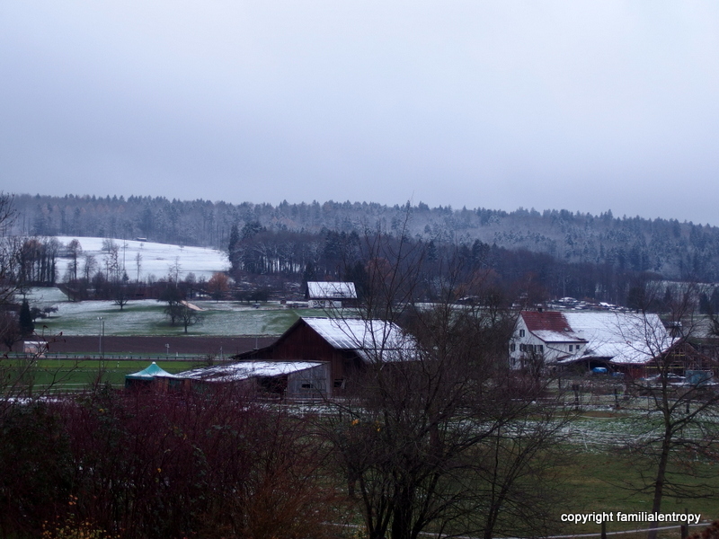 During the next night, the weather changed again and we finally had our first snow of the season. Just a little bit. But it does feel so much more christmassy that way, doesn’t it? So, away with the autumn jacket and out with the snowsuit.